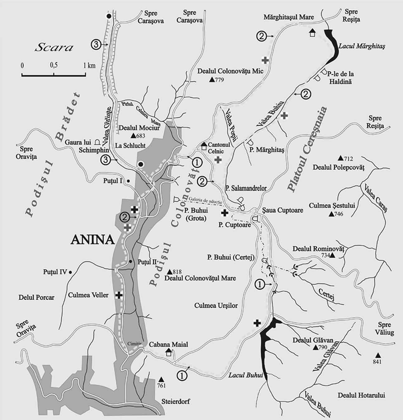 (exurgenta, Grota) – P. Buhui (intrarea Certej) – L. Buhui si L. Buhui – Steierdorf